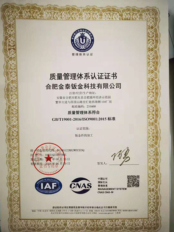 合肥金泰鈑金科技有限公司,專(zhuān)業(yè)從事精密鈑金件加工的新技術(shù)股份制企業(yè),主要承接各類(lèi)鈑金加工、激光切割、沖壓件、機(jī)箱機(jī)柜、設(shè)備外殼、不銹鋼產(chǎn)品的精密鈑金加工制作。